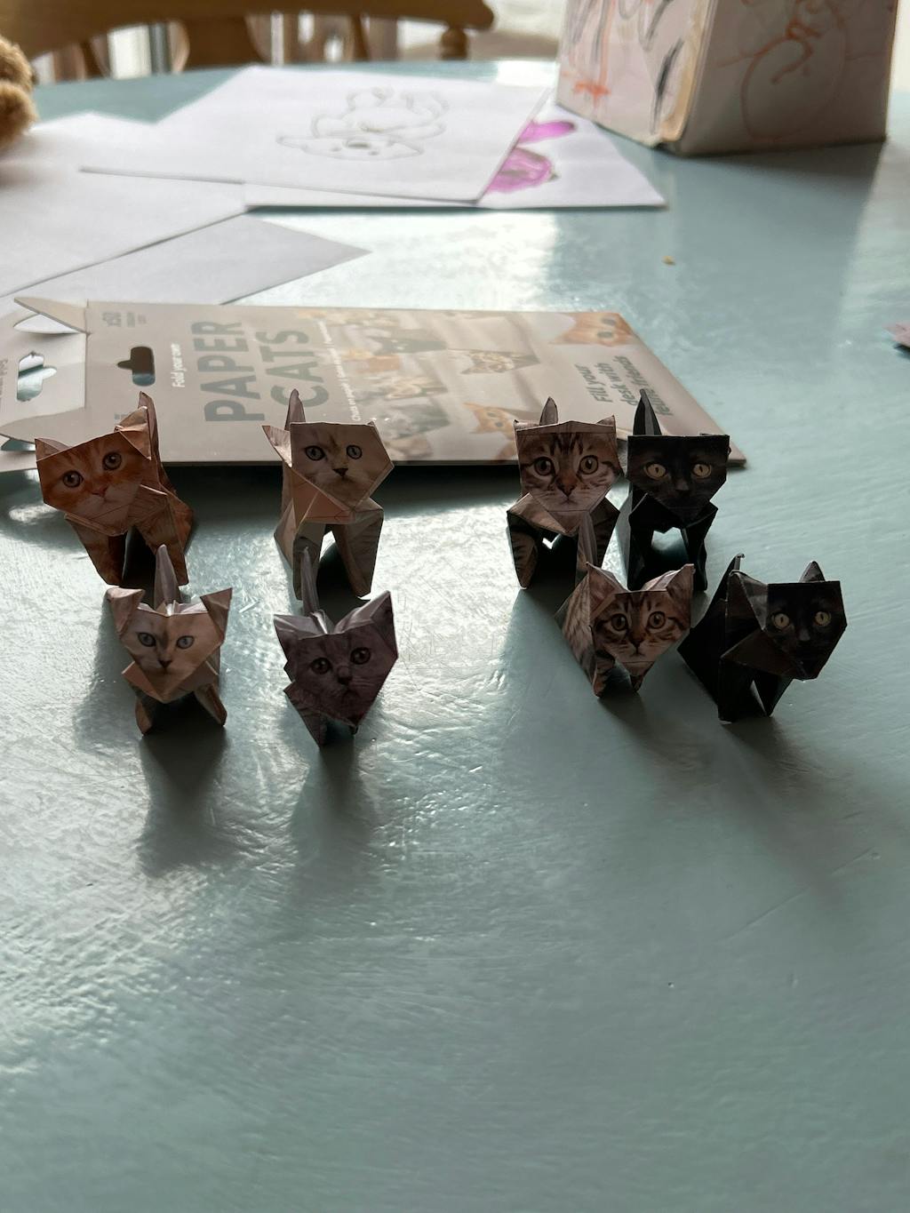 Fold the eco-friendly printed origami paper into life-like cats and kittens of different breeds and sizes and scatter them around your home or workspace to bring you joy everyday.